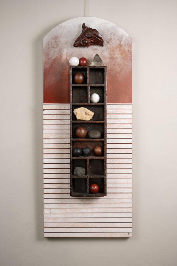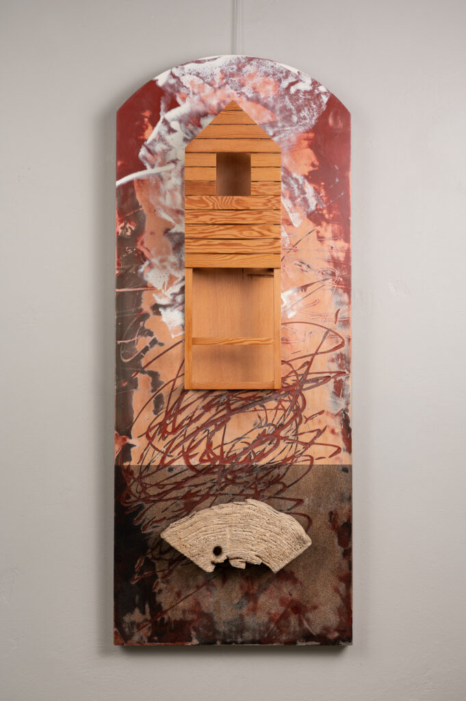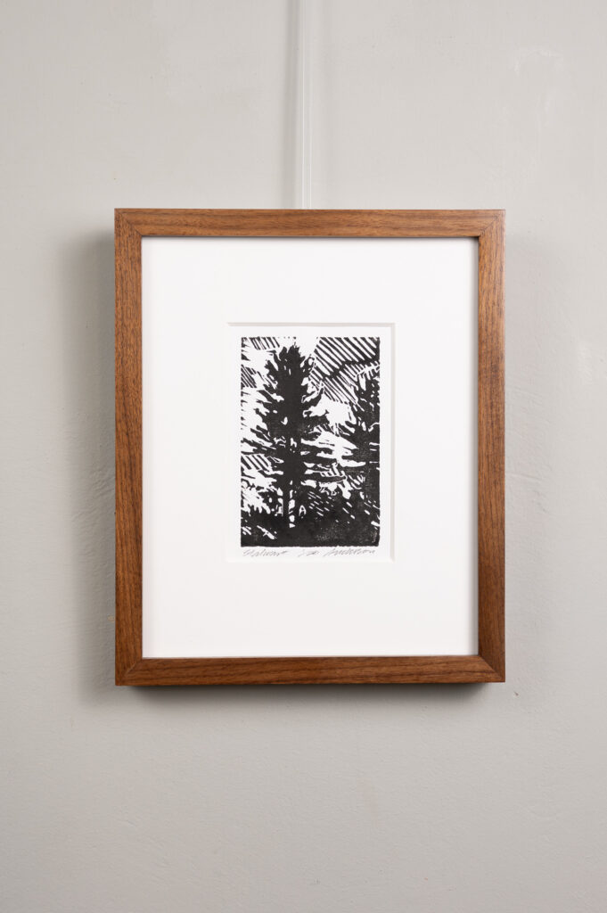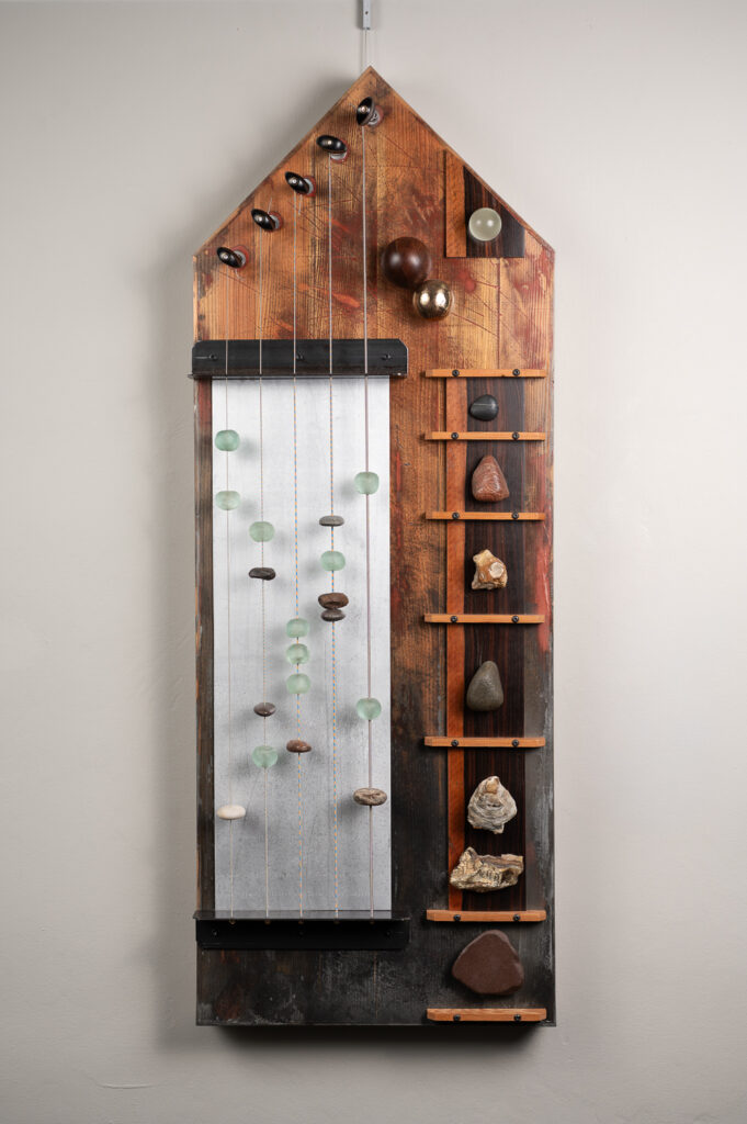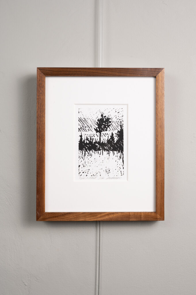The new assemblages and linocut prints in this exhibit explore my enduring desire to head north. As the various titles suggest, these pieces embody aesthetic dimensions of places fixed in my memory—majestic eastern white pines, collected images and found objects, and old granaries, mills, and lookout towers.